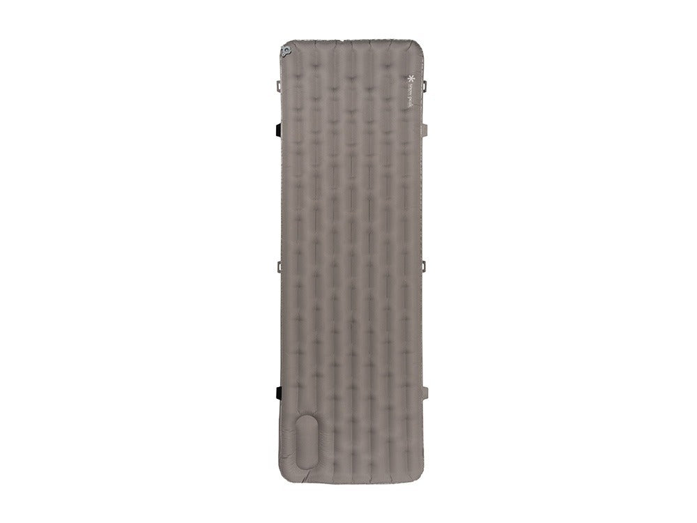 本体には逆止弁付きの手動ポンプを内蔵しており、電動ポンプがなくてもエアの注入ができます。断熱性を示すR値(熱抵抗値)は5.4を誇り、四季を通じて快適に使用可能です。一般的に冬場は4.0以上を推奨とされているので、非常に優れた数値と言えます。さらに、寝返りの際などに発生する音を軽減する構造で、より静かな睡眠環境を提供します。また、マット同士の接続にも対応。