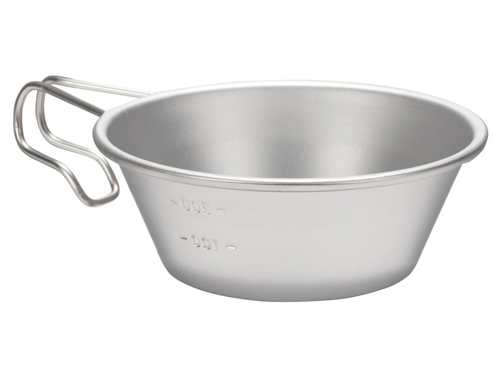 アウトドアの定番、シェラカップ。コップやお皿、計量カップの代わりとして使うことができる万能アイテムです。重ねられるので、収納や携帯にも便利。指に掛かりやすいハンドルのため、持ちやすいのがうれしいポイントです。 軽量なチタン素材のシェラカップも用意しています。